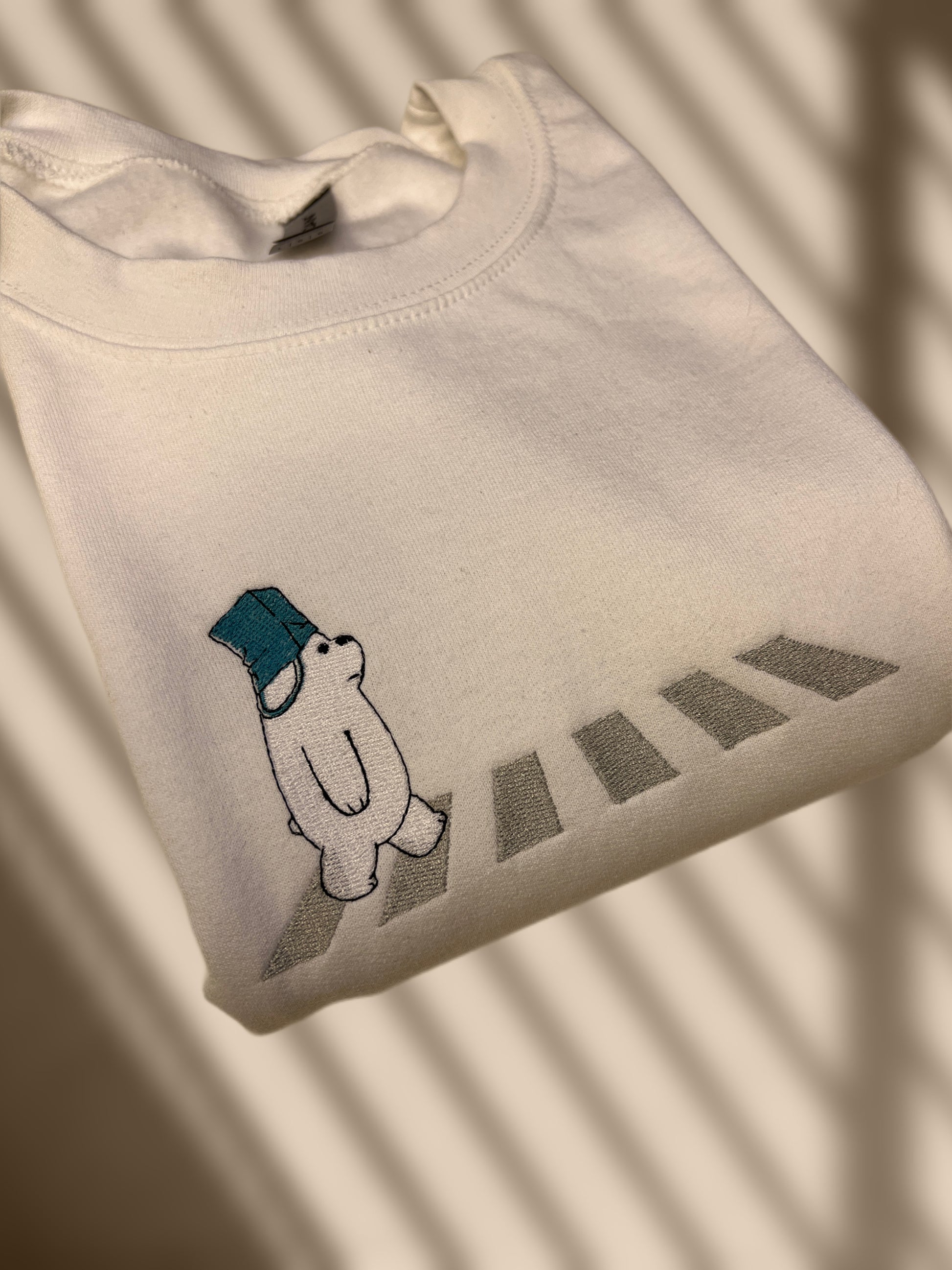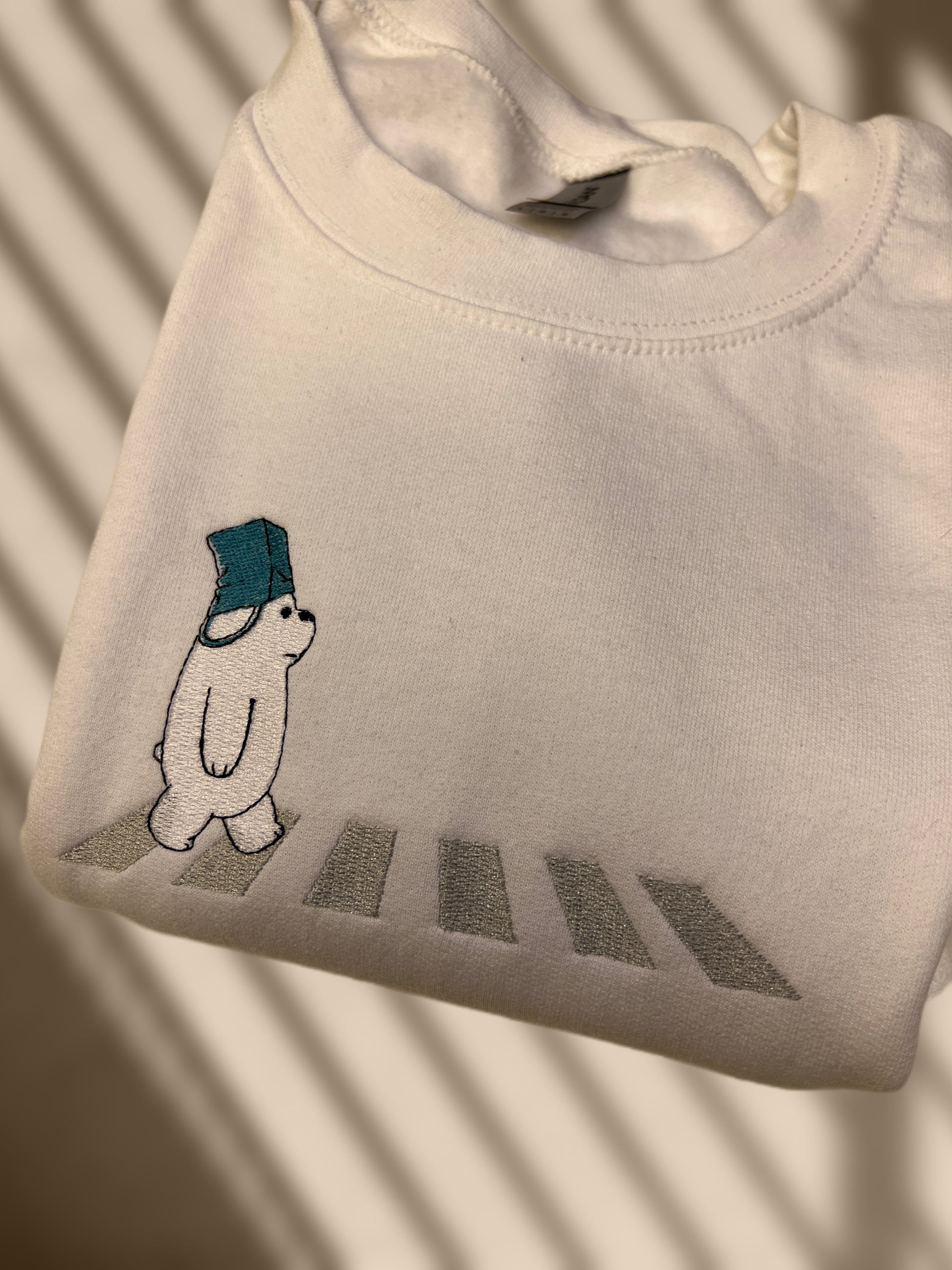 Walking Bear with Blue Bag on Head Embroidered Sweatshirt!