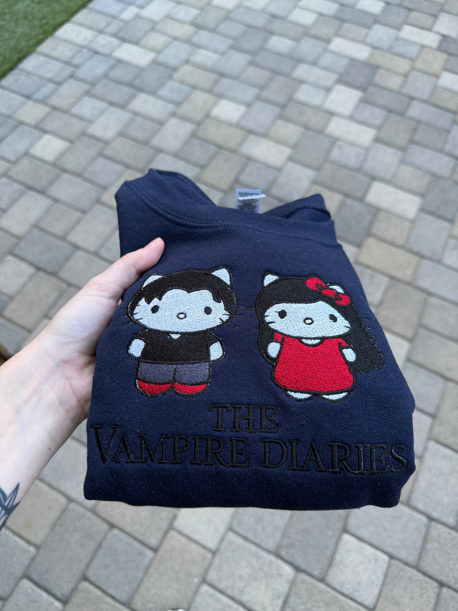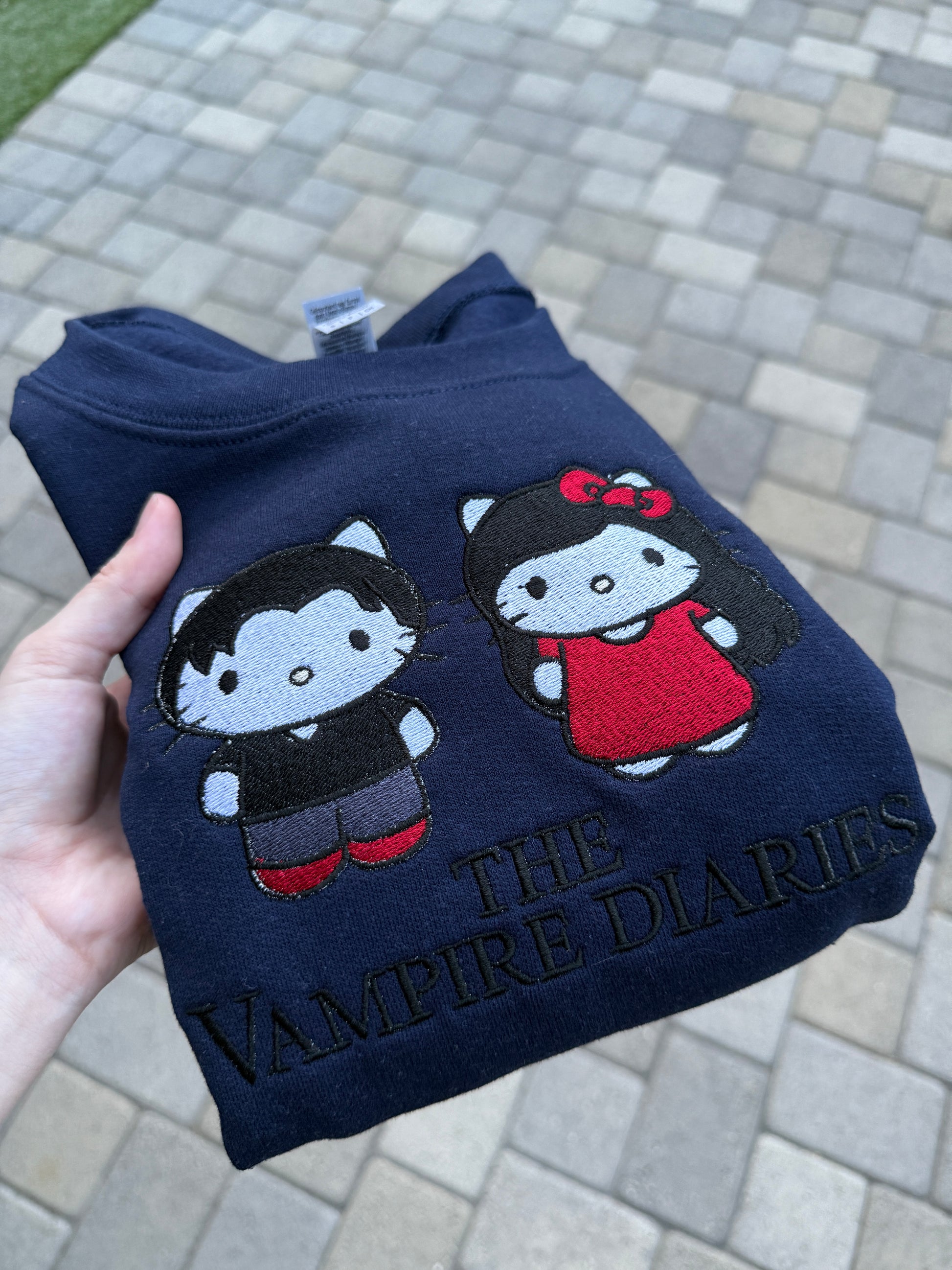 The Vampire Diaries Elena and Damon embroidered sweatshirt!
